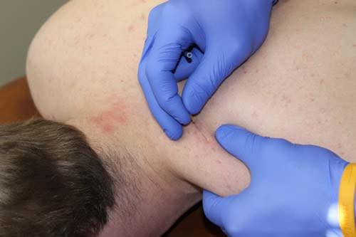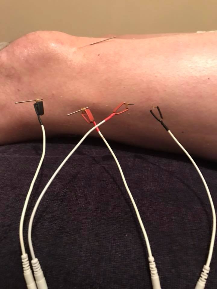 Specific Dry Needing of the knee joint,quite a lot of people these days suffer joint pain specifically the knee joint weather it be road running or playing ball on Astro turf or just wear and tear, I find this treatment very beneficial, how it works I use an infra-red lamp over the area for 5-8 minutes this will increase circulation then I use four acupuncture needles specifically placed in the knee joint upon insertion the body will release endorphins (body’s natural painkillers) to the area and relief is felt