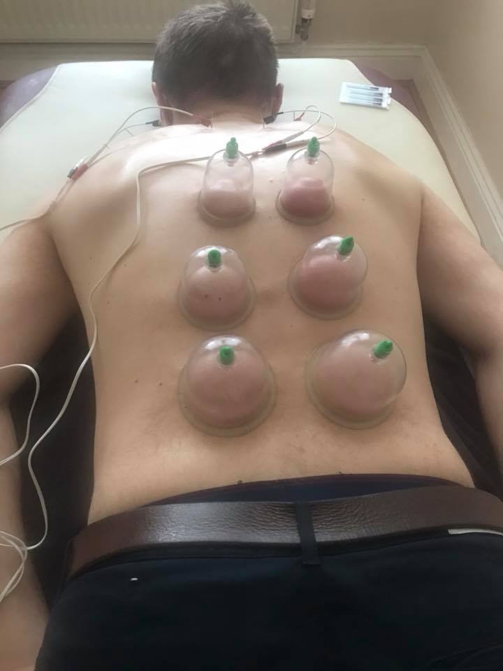 Combination of electrical dry needling and cupping to reduce stress and lower back pain